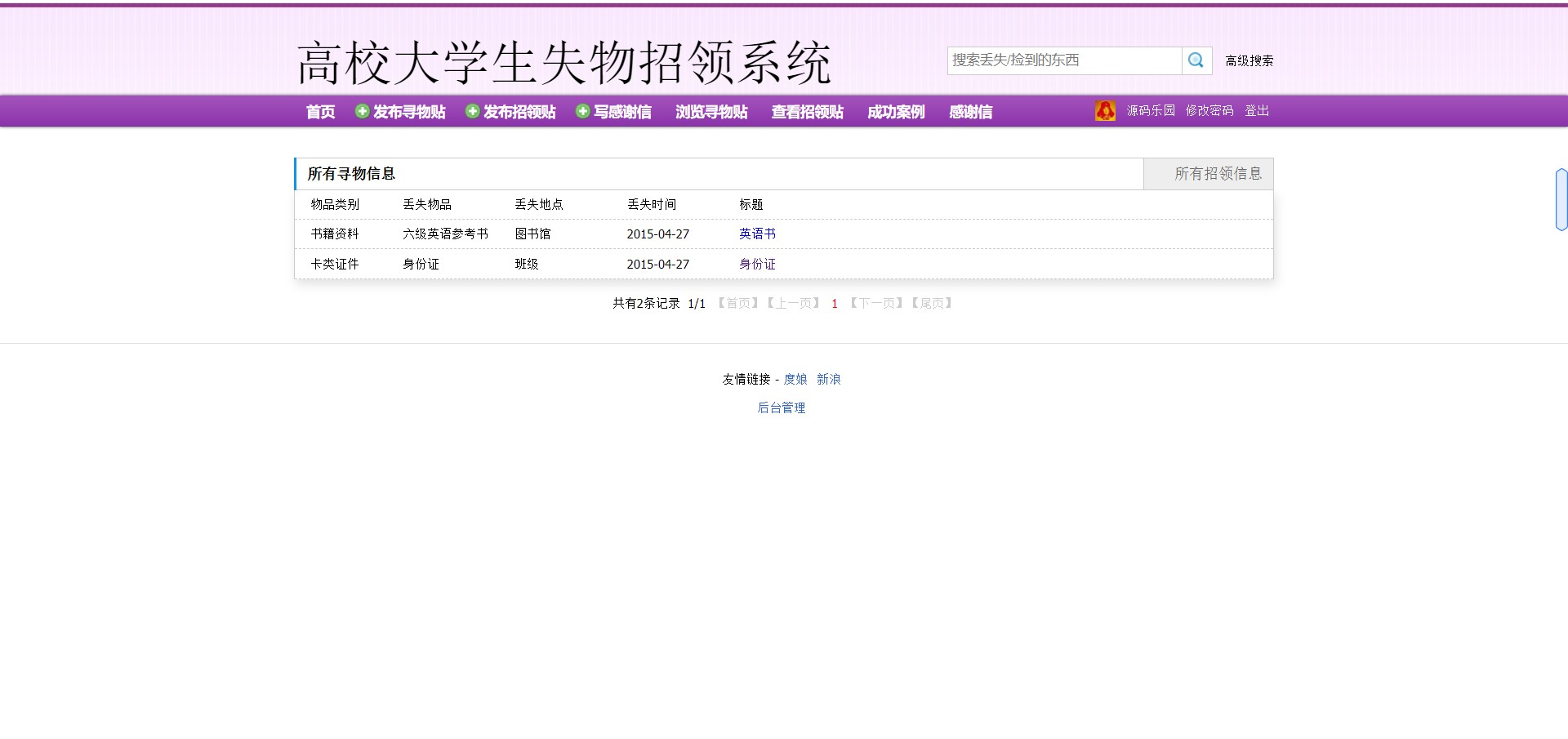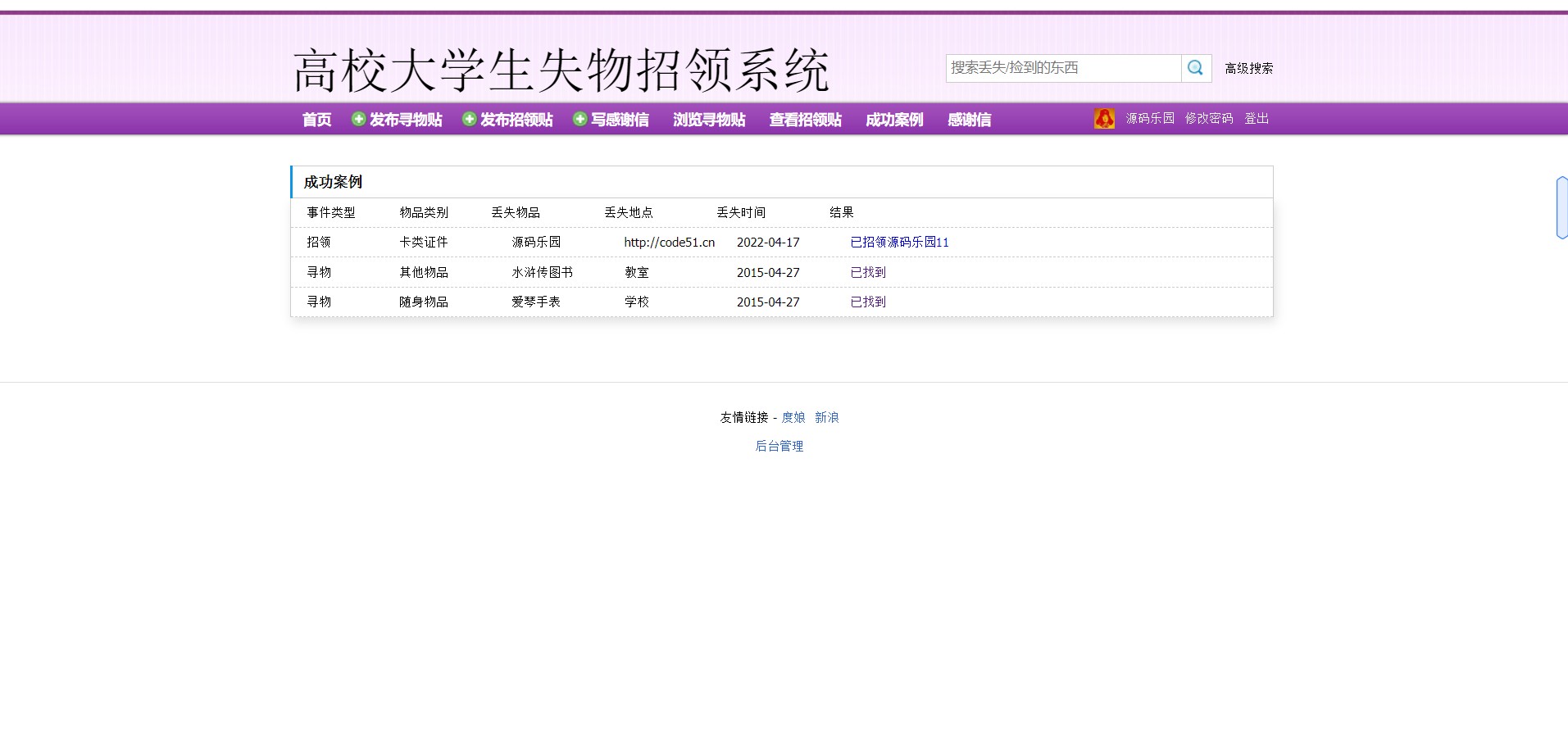 本此毕业设计在研究目前国内外先进网站的基础上,以java为开发语言,myeclipse为开发工具,mysql作为数据库,结合失物招领相关信息进行开发的网站。这个系统具有伸缩性好,扩展性强,能兼容、易维护、界面美观,功能实用的功能。系统操作上,它对管理的工作人员的要求极低,只需要懂得基本的计算机操作即可胜任中网的工作。本文阐述了校园网的优势,并对所做系统站的分析、设计及实现过程做了详细介绍。系统完成后真正实现了爱心网站的网络化,本次的系统开发是失误招领网站网络化的推进,具有深远意义。