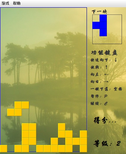 俄罗斯方块游戏也不断地推出各式各样的模式,也有许多不同的版本供大家玩耍,因为游戏本身有简单,有复杂,能够很好地锻炼游戏玩家的脑力反应能力,和逻辑思维能力,还能给玩家带来无穷的游戏乐趣,所以深受广大玩家的喜欢。对于开发游戏软件,大多数人都感到触摸不到,很神奇,随着开发方法和工具的不断推陈出新,自己动手开发一些小游戏也并非遥不可及。俄罗斯方块游戏在游戏史上的地位无可匹敌,并且游戏的界面简约,代码并不是很复杂,互联网上也有很多关于俄罗斯方块游戏实现的一些算法和设计,难度并非特别大。