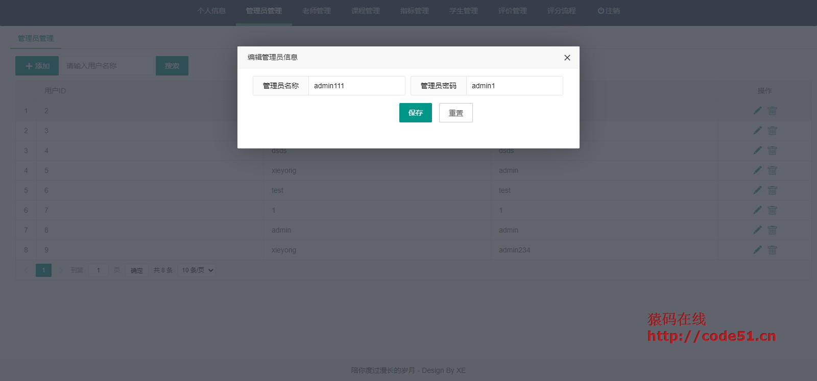 基于SSM+SpringBoot的课程评价系统,系统采用Spring,SpringMVC,Mybatis,SpringBoot作为基础框架,前端采用Html/Thymleaf渲染页面。系统整体包含,个人,管理员管理,老师管理,课程管理,指标管理,学生管理,评价管理,评分流程。包含管理员角色和学生角色和教师角色。