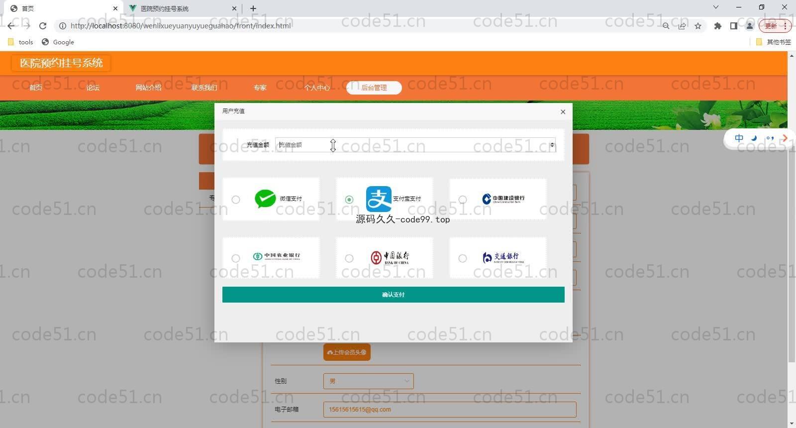 基于SpringBoot+MySQL+Vue的医院预约挂号系统(附论文),管理员,用户角色等。用户管理,专家管理,职位管理,医院预约挂号系统的总体功能模块。然后,详细设计系统的主要功能模块,通过数据库设计过程将相关的数据信息存储到数据库中,再通过使用关键的开发工具,如IDEA开发平台、AJAX技术等,编码设计相关的功能模块。接着,主要采用功能测试的方式对系统进行测试,找出系统在运行过程中存在的问题,以及解决问题的方法,不断地改进和完善系统的设计。最后,总结本文介绍的系统的设计和实现过程,并且针对于系统的开发提出未来的展望工作。本系统的研发具有重大的意义,在安全性方面,用户使用浏览器访问网站时,采用注册和密码等相关的保护措施,提高系统的可靠性,维护用户的个人信息和财产的安全。在方便性方面,促进了文理医院预约挂号系统的信息化建设,极大的方便了相关的工作人员对文理医院预约挂号系统信息进行管理
