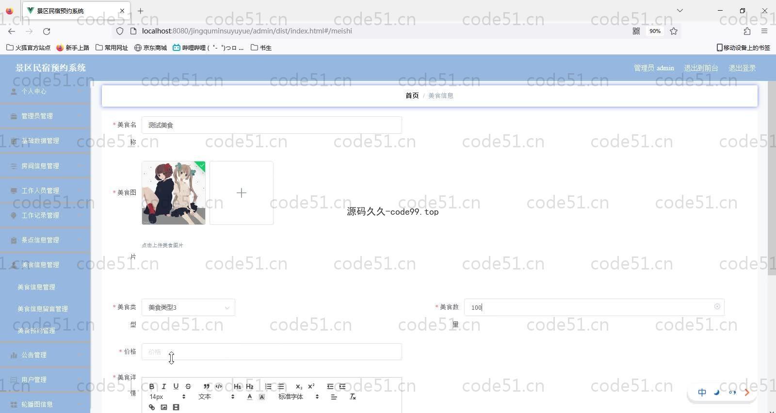 基于SpringBoot+MySQL+Vue的景区民宿预约系统(附论文),管理员,用户角色等。景区民宿预约系统在对开发工具的选择上也很慎重,为了便于开发实现,选择的开发工具为Eclipse,选择的数据库工具为Mysql。以此搭建开发环境实现景区民宿预约系统的功能。其中管理员管理用户,新闻公告。