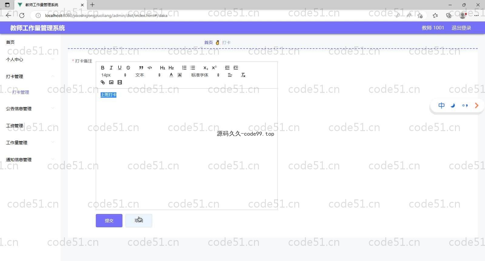 基于SpringBoot+MySQL+Vue的教师工作量管理系统(附论文),管理员,用户角色等。教师工作量管理系统分为管理员还有用户两个权限,管理员可以管理用户的基本信息内容,可以管理公告信息以及公告的租赁信息,能够与用户进行相互交流等操作,用户可以查看教师信息,可以查看公告以及查看管理员回复信息等操作。该教师工作量管理系统采用的是WEB应用程序开发中最受欢迎的B/S三层结构模式,使用占用空间小但功能齐全的MySQL数据库进行数据的存储操作,系统开发技术使用到了JSP技术。该教师工作量管理系统能够解决许多传统手工操作的难题,比如数据查询耽误时间长,数据管理步骤繁琐等问题。总的来说,教师工作量管理系统性能稳定,功能较全,投入运行使用性价比很高。