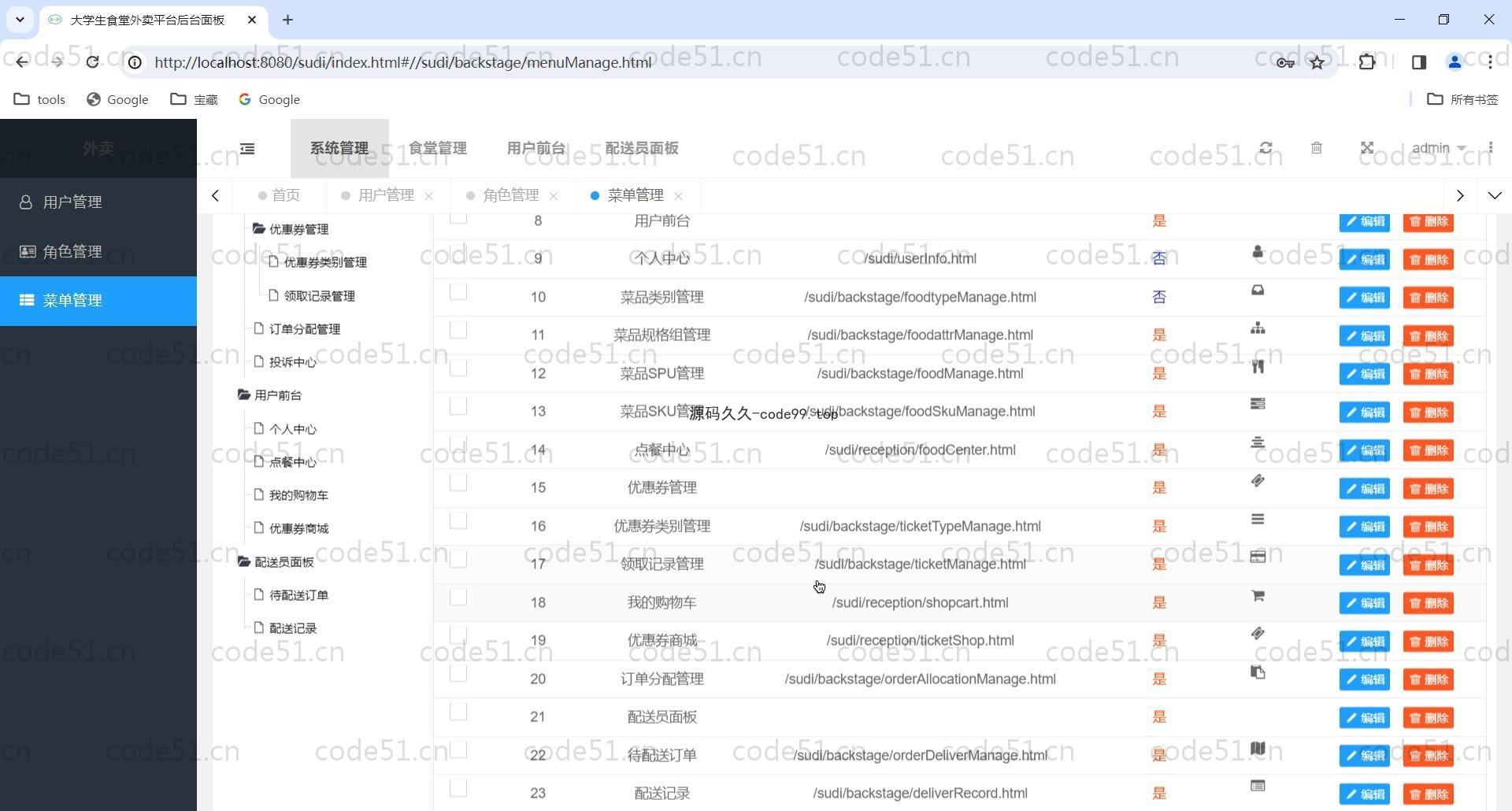 基于SSM+LayUI+JSP的订餐堂食外卖配送系统(附论文),管理员,普通,配送员,食堂管理员角色。从餐品的管理,餐品的分类以及查询,到订餐车实现,客户对订单的处理,再到系统对订餐和餐品的管理。系统从业务流程的角度上分析,完成了订餐系统的基本功能,可是使得用户通过互联网进行点餐以及交易。相比于以往的订餐方式,网上订餐更加便捷,高效,对于餐厅更加节省人力,有利于管理,对于顾客更加省时省力。由于上述缺陷,为了适应当前时代信息快速发展,数据大爆炸的趋势,采用先进的发展的网上订餐管理系统使上述的种种缺陷得以得到缓解和解决,精简了餐厅的工作流程,顾客的订餐更加便捷,从而提高了餐厅的营业额。由于网络的的快速发展,所以订餐系统随着网络也要有一定的发展与变化。因此毕业设计“基于SSM的网上外卖订餐系统的设计与实现”是非常有必要的。网上外卖订餐系统对订餐所涉及的两个主要用户:客户与店家(餐厅),在实现网上订餐之前,双方进行订餐工作,双方都需要花费大量不必要的时间精力。而快速发展的网络技术,使得订餐系统中所要使用的管理流程在很大程度上做到了极大的简化了,使得餐厅的管理系统更加快速高效,更加便捷。提高餐厅工作人员的整体工作效率,更加给使用订餐系统的顾客更加便捷的使用享受和良好的用户体验。