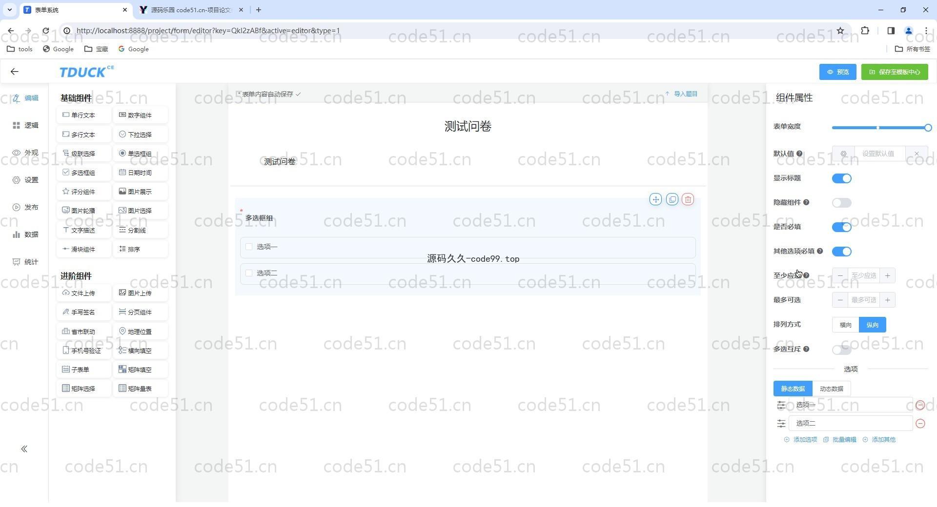 基于Vue.js+SpringBoot+MySQL的在线问卷调查回收系统,用户,管理员角色。整体功能包含导入问题,逻辑添加,外观,设置管理,模板导入,试题添加,统计图表,项目呢日用,模板,回收问卷统计等。