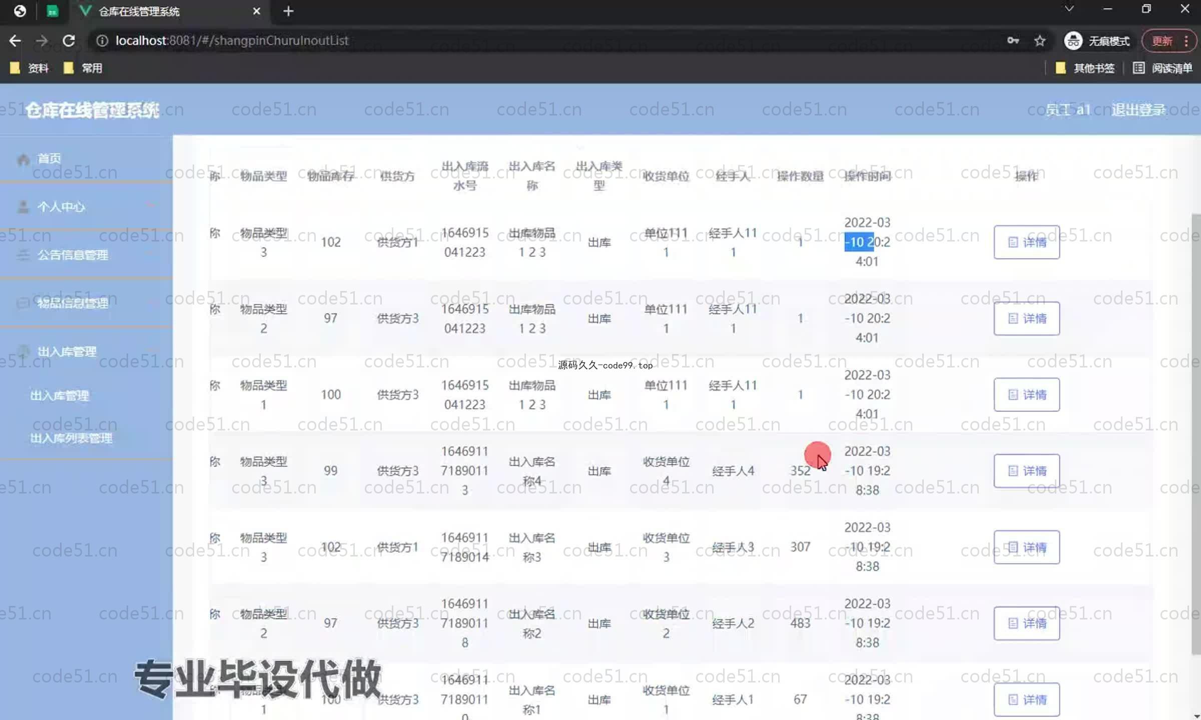 本次使用Java技术开发的仓库在线管理系统,就是运用计算机来管理仓库物品出入库信息,该系统是可以实现物品管理,出入库管理,公告管理,供货方管理,员工管理等功能。