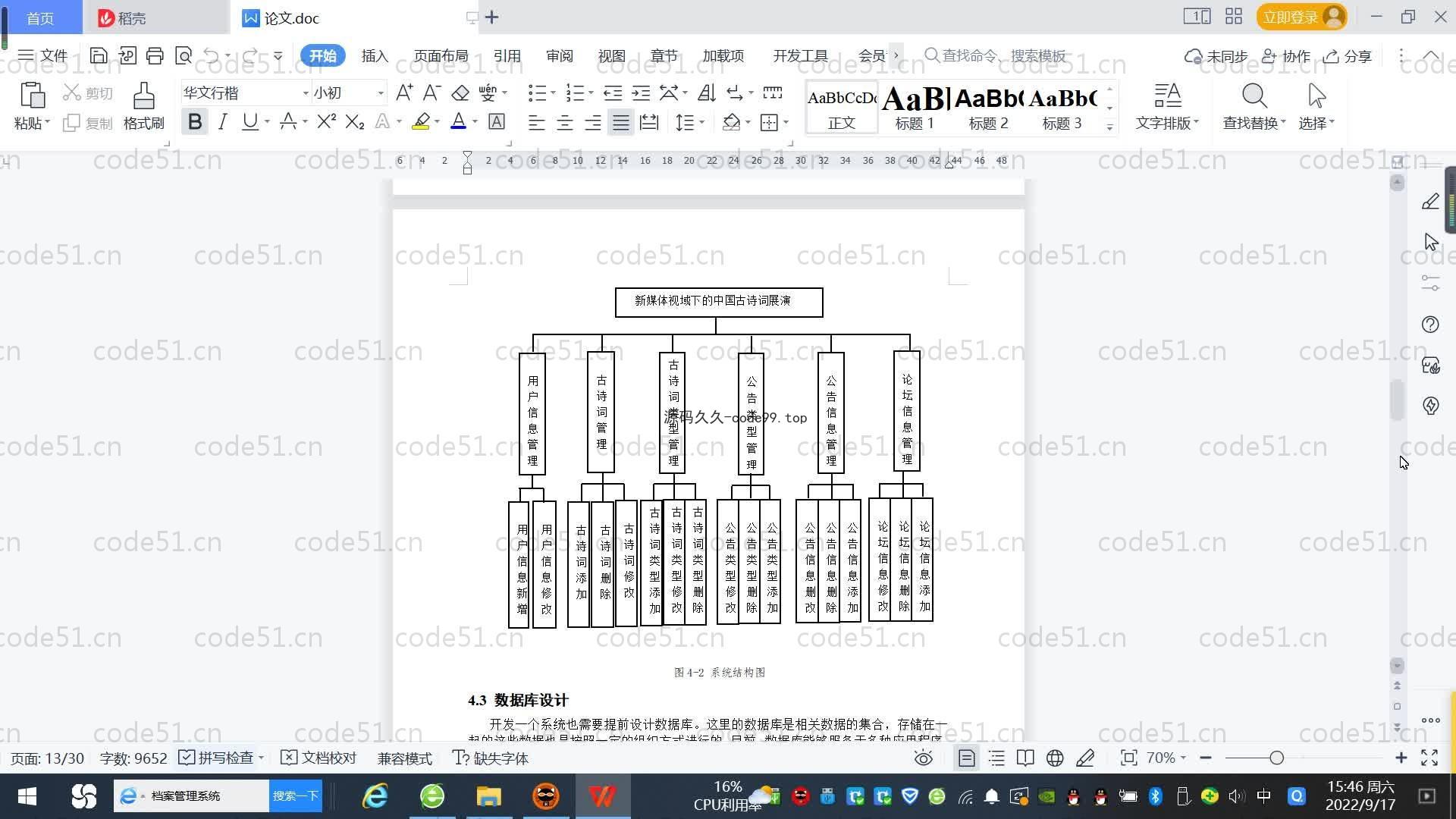 本文主要描述了该新媒体视域下的中国古诗词展演的具体开发过程,在SSM框架的基础上,采用vue技术和MYSQL数据库,使该新媒体视域下的中国古诗词展演具有很好的稳定性和安全性。本设计重点从系统概述、系统分析、系统设计、数据库设计、系统测试和总结这几个方面对该新媒体视域下的中国古诗词展演进行阐述,用户通过该新媒体视域下的中国古诗词展演可以查询自己喜欢的信息。