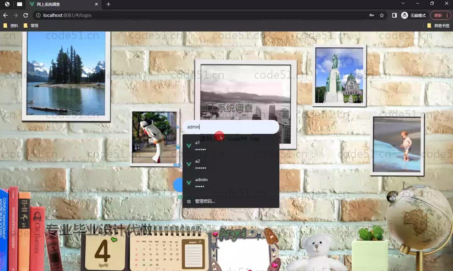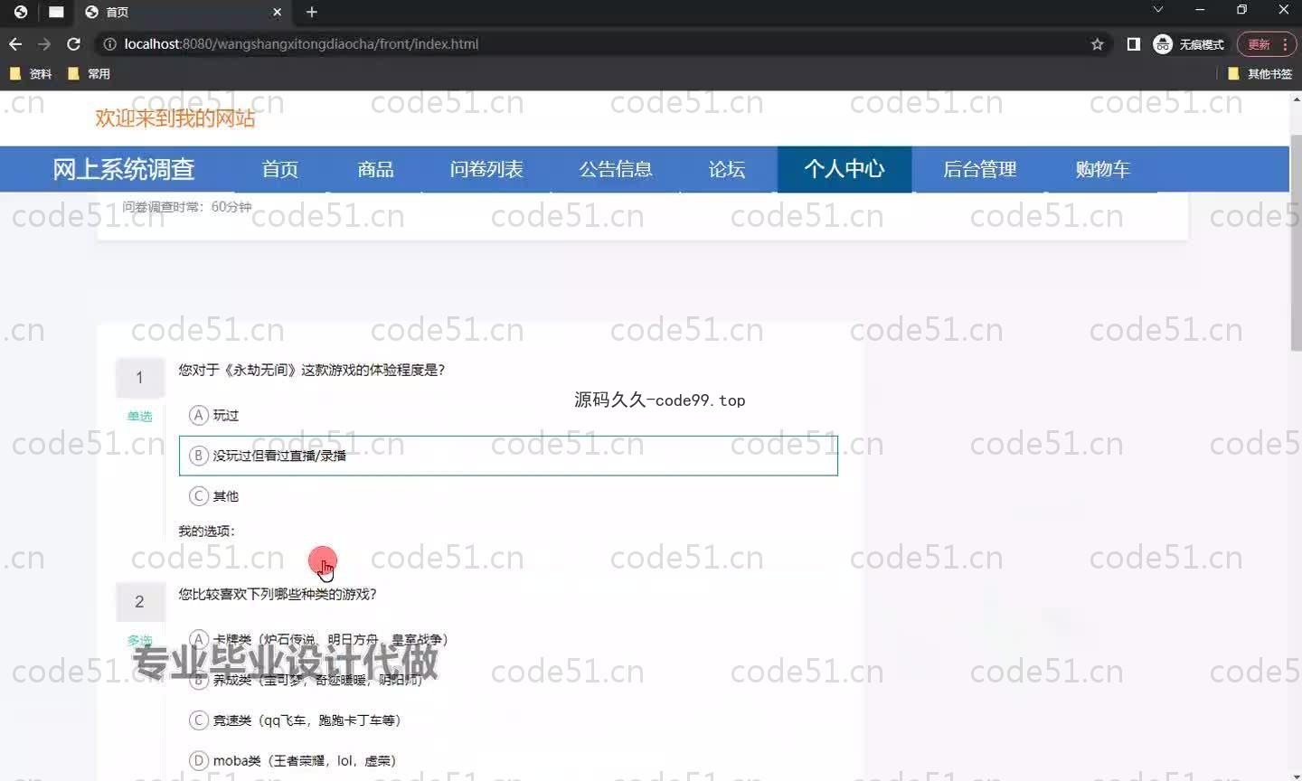 基于SpringBoot+MySQL+SSM+Vue.js的网上系统调查,用户,管理员角色等(具体看下演示视频提供)。