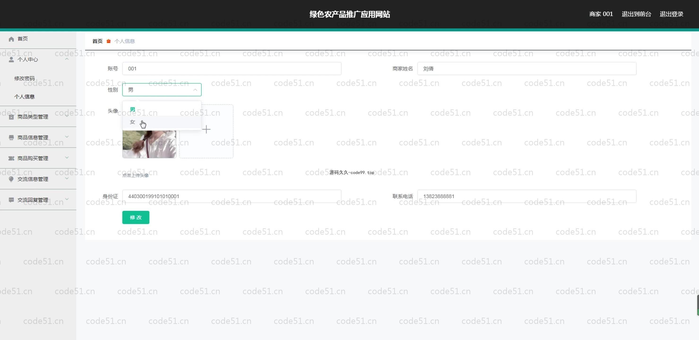 本文以Java为开发技术,实现了一个绿色农产品推广应用网站。绿色农产品推广应用网站的主要实现功能包括:管理员:首页、个人中心、用户管理、商家管理、农业行情管理、农业技巧管理、商品类型管理、商品信息管理、商品购买管理、交流信息管理、交流回复管理、留言板管理、系统管理,商家;首页、个人中心、商品类型管理、商品信息管理、商品购买管理、交流信息管理、交流回复管理,用户;首页、个人中心、商品购买管理、交流信息管理、交流回复管理、留言板管理、我的收藏管理,前台首页;首页、农业行情、农业技巧、商品信息、农业资讯、留言反馈、个人中心、后台管理功能,基本上实现了整个绿色农产品推广应用网站的过程。