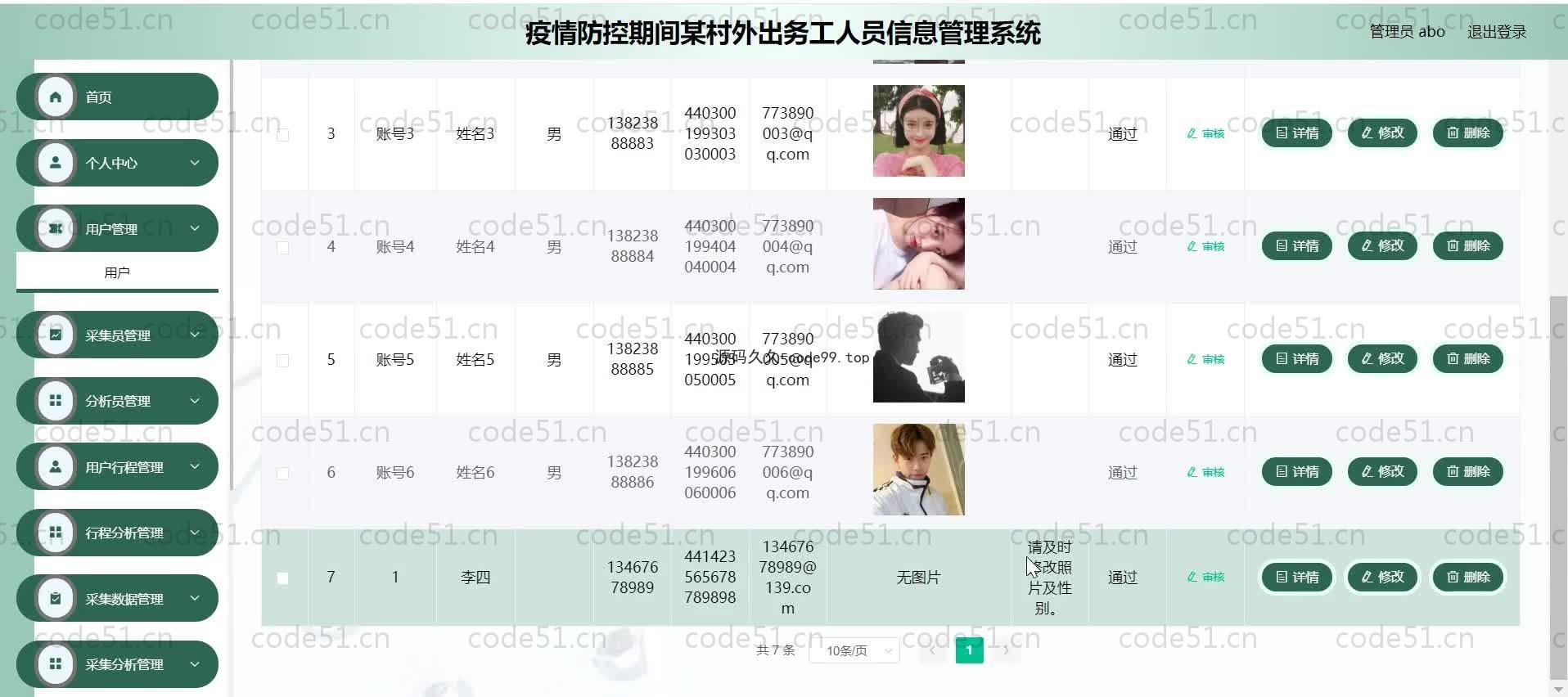 基于SpringBoot+MySQL+SSM+Vue.js的疫情人员外出务工管理系统(附论文),用户,管理员角色等(具体看下演示视频提供)。网络的广泛应用给生活带来了十分的便利。所以把疫情防控期间某村外出务工人员信息管理与现在网络相结合,利用java技术建设疫情防控期间某村外出务工人员信息管理系统,实现疫情防控期间某村外出务工人员信息的信息化。则对于进一步提高疫情防控期间某村外出务工人员信息管理发展,丰富疫情防控期间某村外出务工人员信息管理经验能起到不少的促进作用。