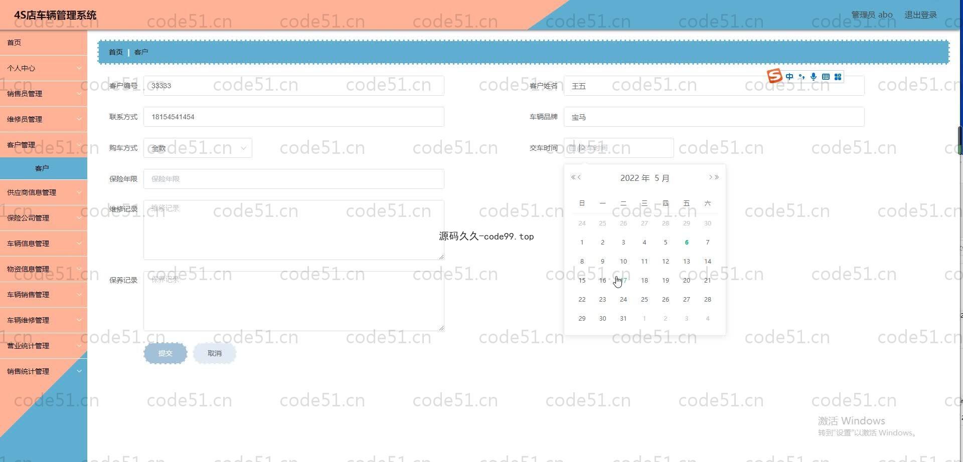 任何系统都要遵循系统设计的基本流程,本系统也不例外,同样需要经过市场调研,需求分析,概要设计,详细设计,编码,测试这些步骤,基于java语言设计并实现了4S店车辆系统。该系统基于B/S即所谓浏览器/服务器模式,应用java技术,选择MySQL作为后台数据库。系统主要包括首页、个人中心、销售员管理、维修员管理、客户管理、供应商信息管理、保险公司管理、车辆信息管理、物资信息管理、车辆销售管理、车辆维修管理、营业统计管理、销售统计管理等功能模块。