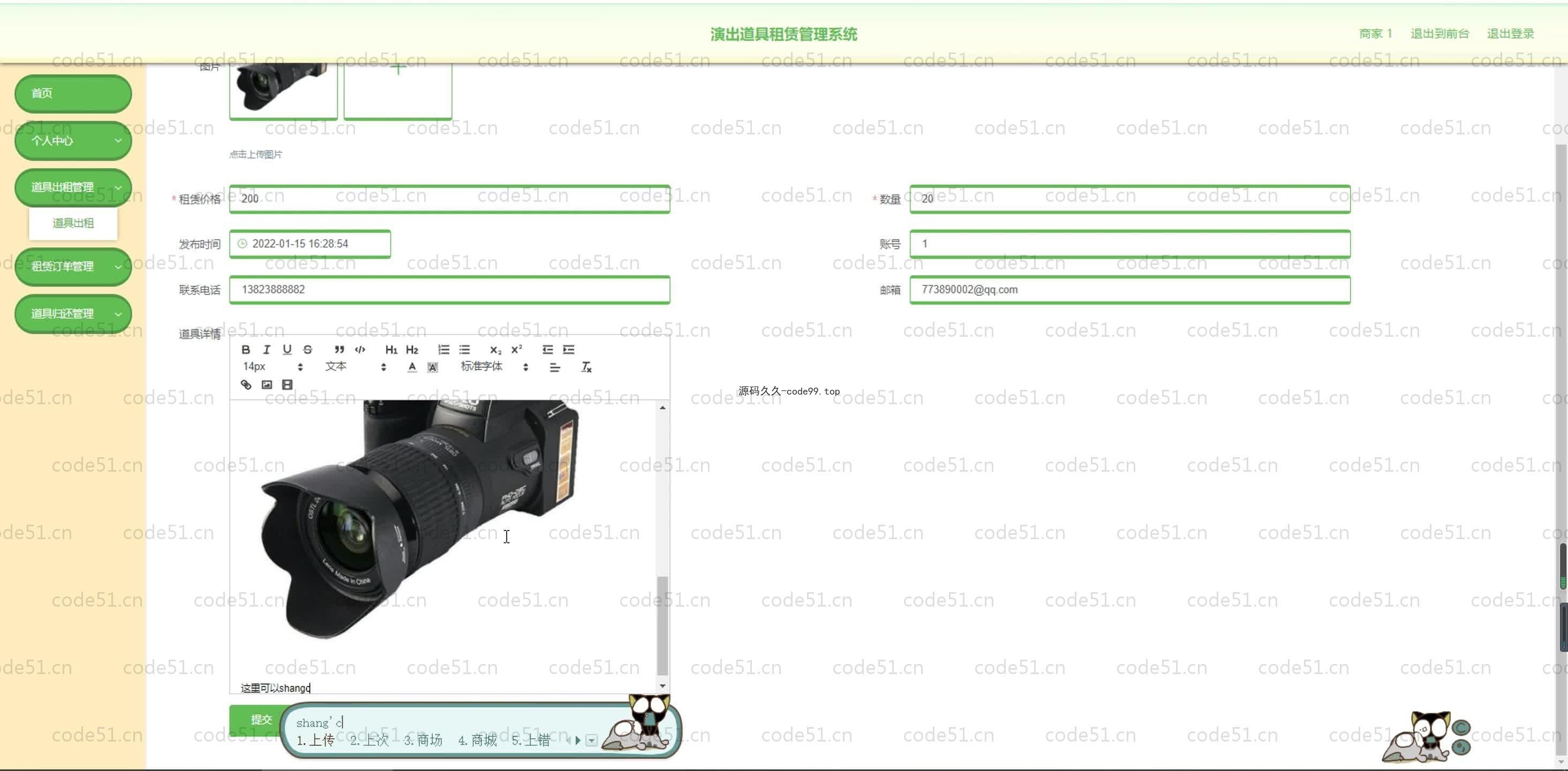 基于SpringBoot+MySQL+SSM+Vue.js的演出道具租赁系统,用户,管理员角色等(具体看下演示视频提供)。