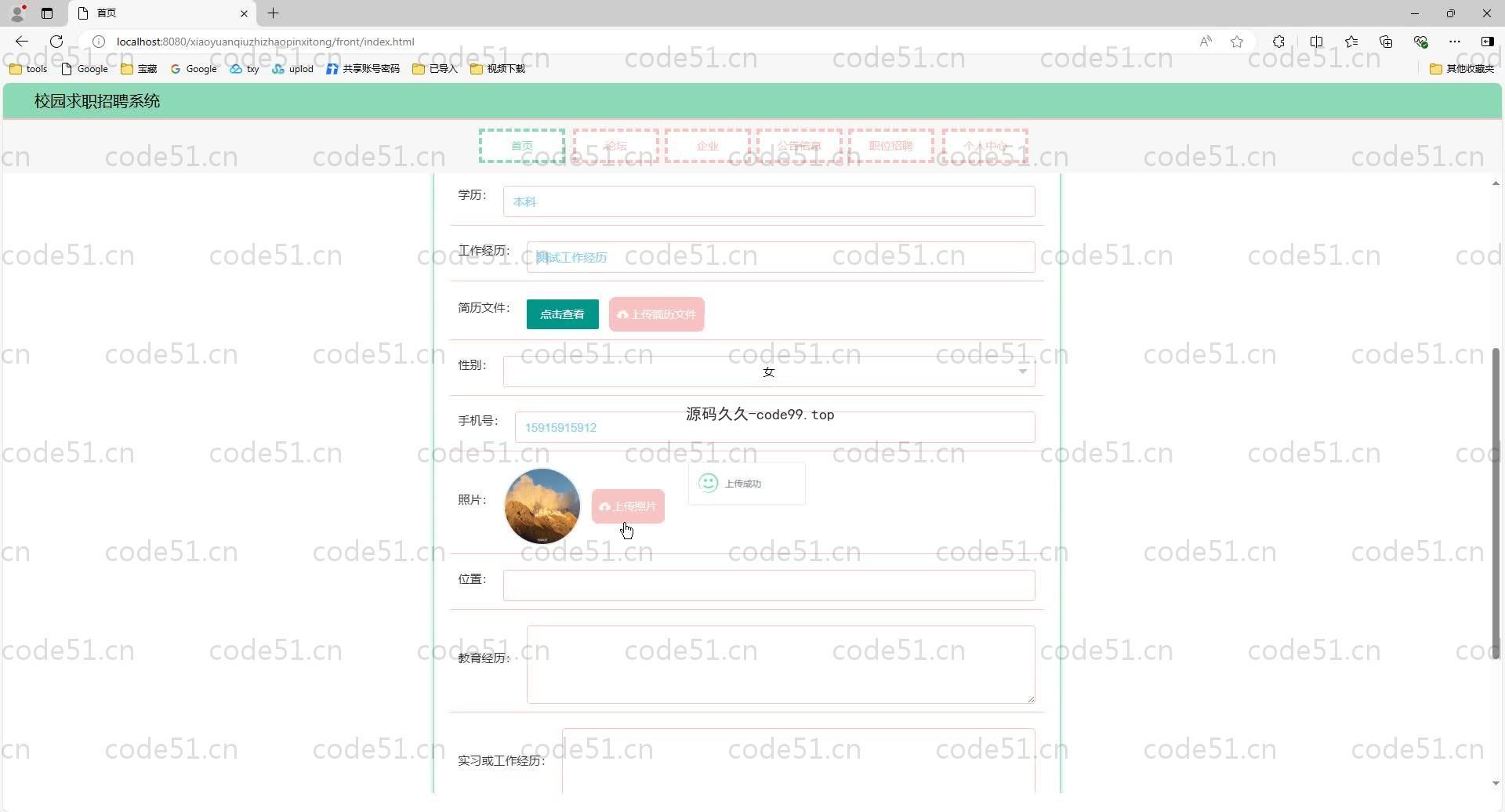 基于SpringBoot+MySQL+SSM+Vue.js的校园求职招聘(附论文),用户,管理员角色等(具体看下演示视频提供)。传统办法管理信息首先需要花费的时间比较多,其次数据出错率比较高,而且对错误的数据进行更改也比较困难,最后,检索数据费事费力。因此,在计算机上安装校园求职招聘系统软件来发挥其高效地信息处理的作用,可以规范信息管理流程,让管理工作可以系统化和程序化,同时,校园求职招聘系统的有效运用可以帮助管理人员准确快速地处理信息。
