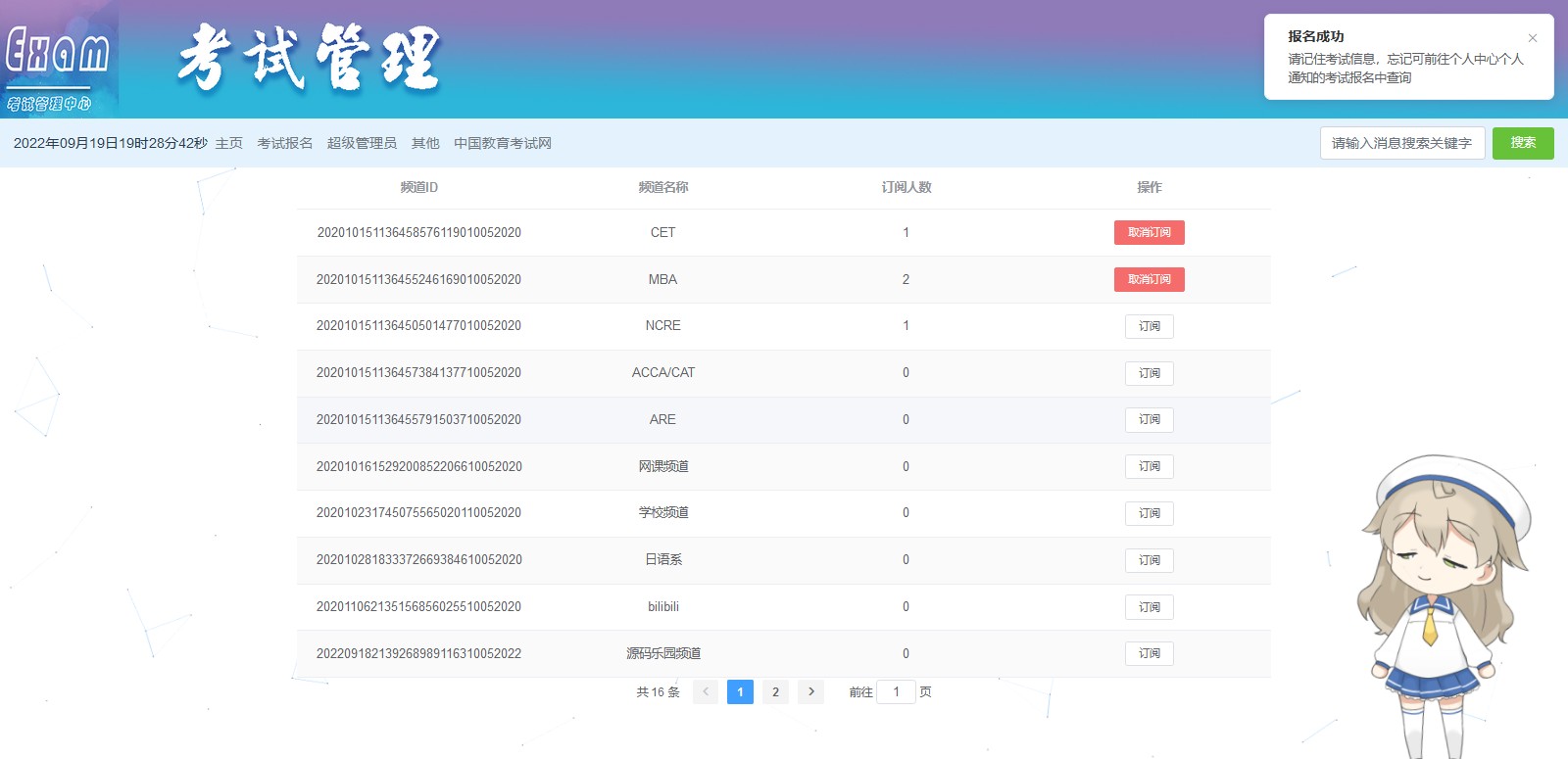 在教务中心里要实现,考点管理、场次管理、报名管理、成绩管理等