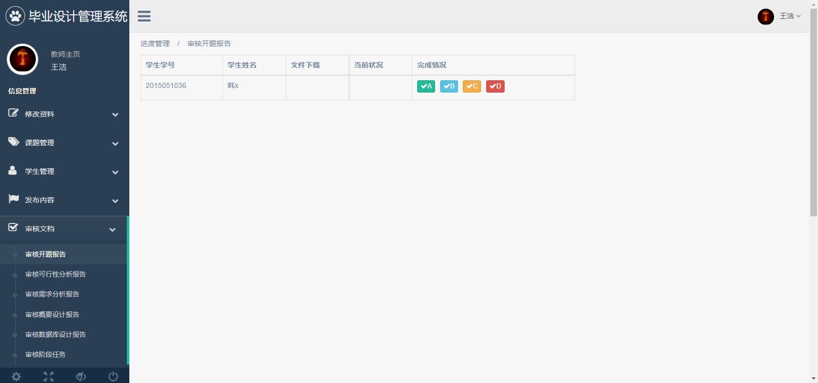 基于SSM+MySQL+Bootstrap+Js+JQuery的高校毕业设计管理系统,包含超级管理员,老师,学生角色。课题管理,学生管理,发布课题,审核文档,文档管理,提问管理,导师管理,学生管理,公告管理等。